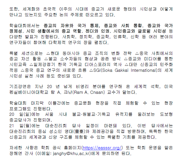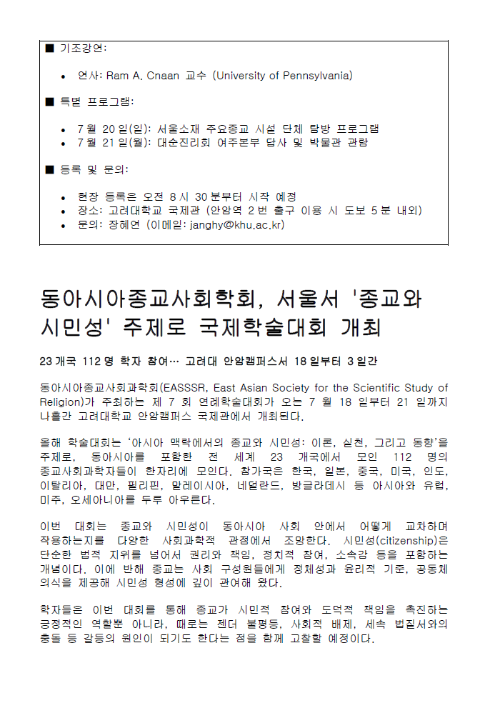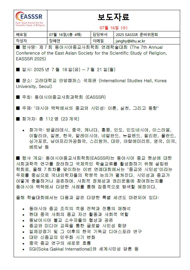 [보도자료] 2025 동아시아종교사회학회 연례학술대회 (고려대, 서울)