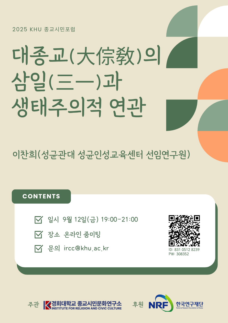 대종교의 삼일과 생태주의적 연관(이찬희, 성균관대 성균인성센터)